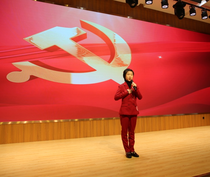 前期从各个班级初赛中产生的选手们陆续上台。他们吟诵着红色经典,激情满怀,仿佛又将我们带入了那艰苦奋斗的峥嵘岁月。评委老师在现场对同学们的诵读从语速、节奏、体态等方面做了点评和指导。安老师亲自示范,在现场诵读了诗文《我爱这片土地》,让孩子们又一次感受到诵读的魅力。