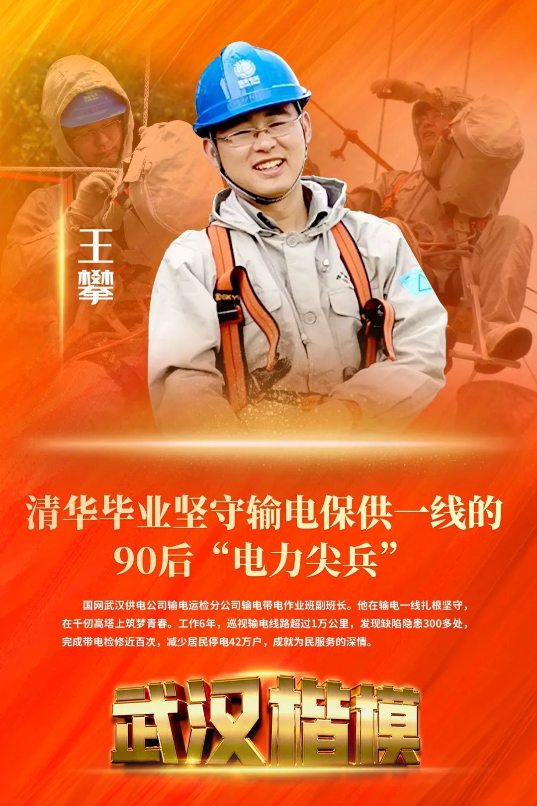 10月13日,武汉市委宣传部发布2022年第三季度“武汉楷模”榜单,清华毕业坚守输电保供一线的江岸90后“电力尖兵”王攀等10人(集体)上榜。