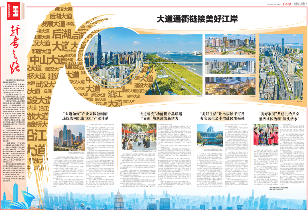 沿江大道、中山大道、京汉大道、解放大道、建设大道、发展大道、后湖大道、和谐大道、金桥大道、武汉大道……数十条大道纵横交错,勾勒出流光溢彩的“汉口之心”。