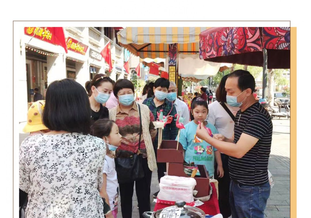 老字号传承人现场表演非遗技艺,让大家一饱眼福。不少非遗传承人亲自来到集市表演皮影戏、捏面人、吹糖人等绝活,以及铝丝编、中国结、毛线编织等手艺展示。今年5月,吉庆街被湖北省文旅厅评为湖北非遗街区,在武汉仅此一条街。