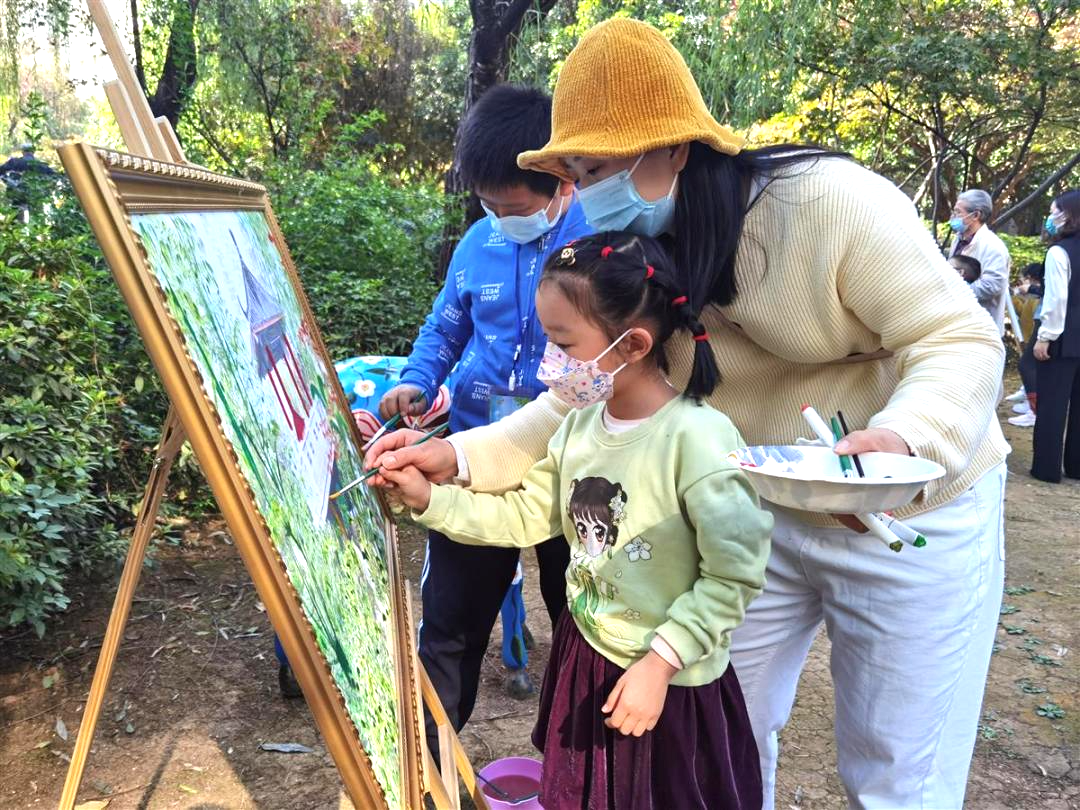 “这幅画我起名叫《康和之秋》,我们的苑区环境优美,落英缤纷,我和爸爸妈妈经常参加社区的清洁家园活动,苑区环境需要共同维护,希望更多的人加入一起努力!”今年10岁的饶航领站在刚刚完成的绘画作品前向大家发出倡议。