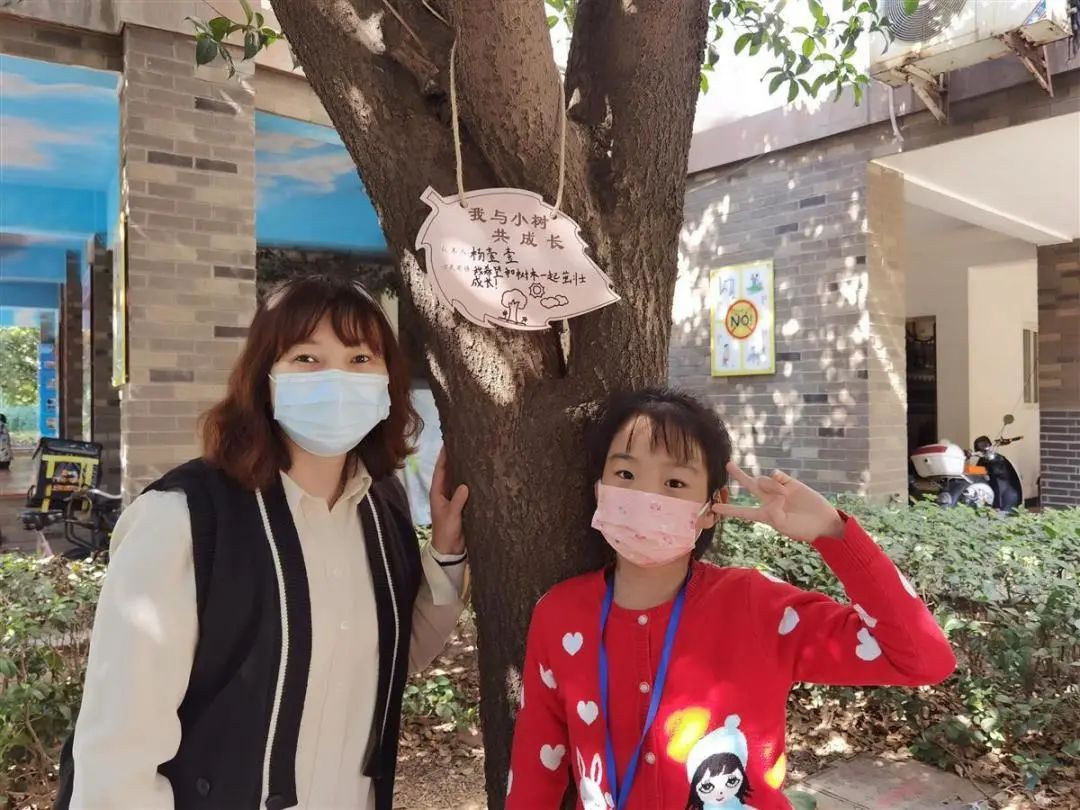 在挂牌认养房前屋后树木环节,小朋友们纷纷在认养牌签上自己的名字、写上寄语,最后郑重地将认养牌挂在树上,自己就算是这棵树的“监护人”了。“要多久浇一次水?多久除一次草?” “ 树上有虫子了怎么办?给它喷洒什么药呢?”,百步亭康和物业服务处绿化队队长陈又明向小朋友们介绍树的生长习性和养护要领。