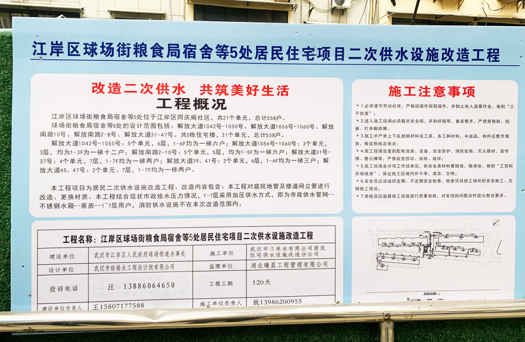 ▲ 球场街道同庆阁社区二次供水改造项目施工牌