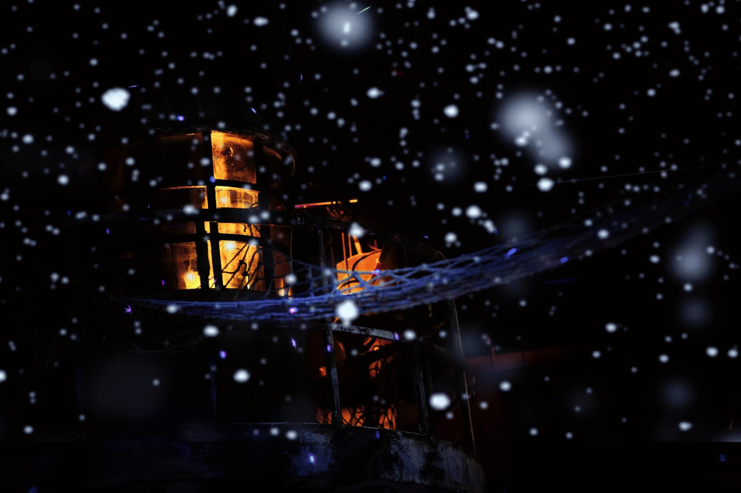 雪的颜色带着沉寂的蓝,像夜晚的海洋,回荡着清新的海风气息与丰富花香的基调,沁人心脾。灯塔的光穿过层层雾霭,在茫茫黑夜照亮大海,让夜行者不再孤单迷茫。