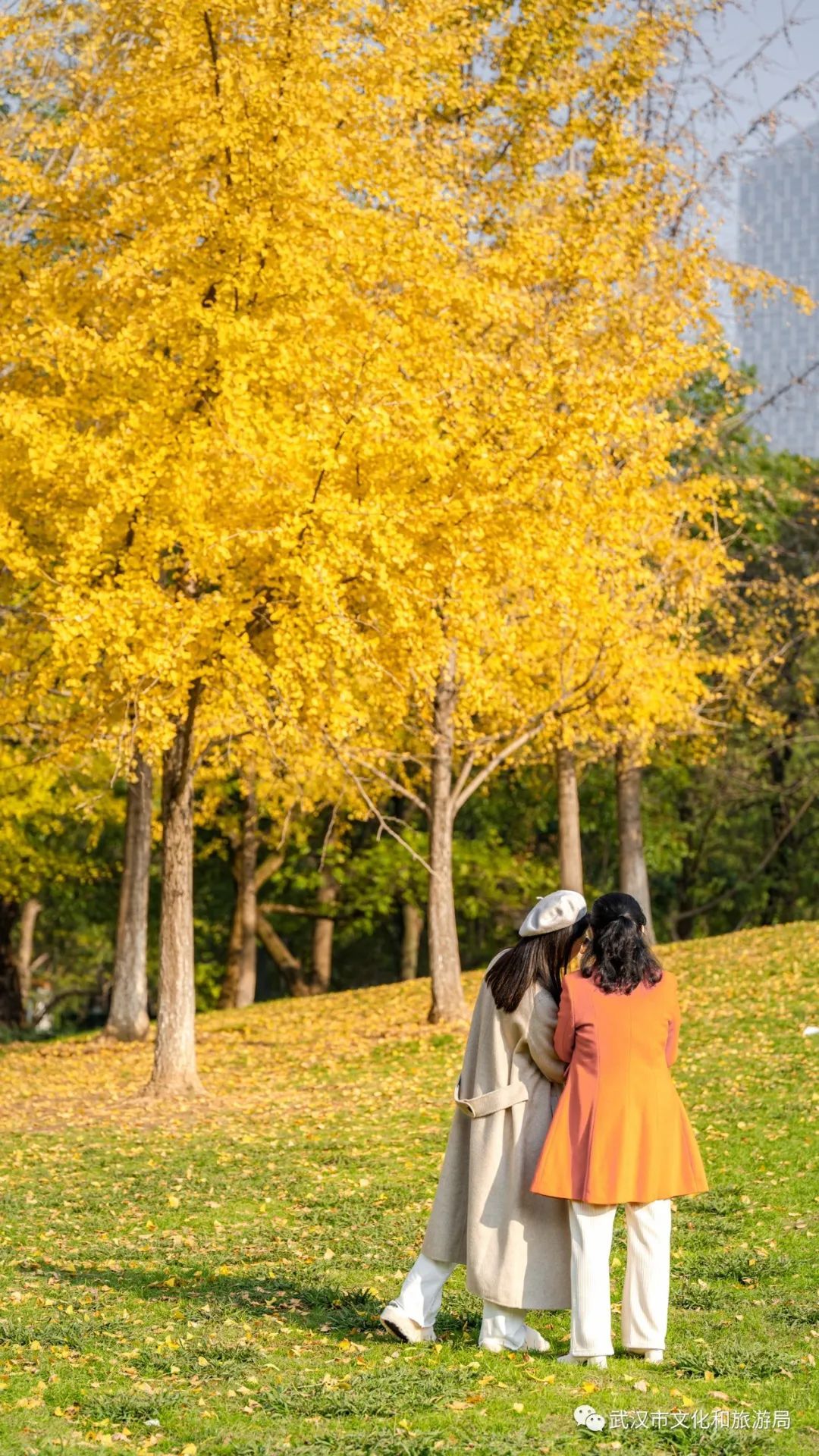 ○ 解放公园的银杏灿烂,洒在草地上铺成金色地毯