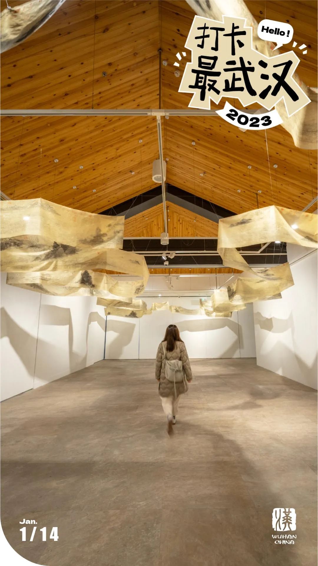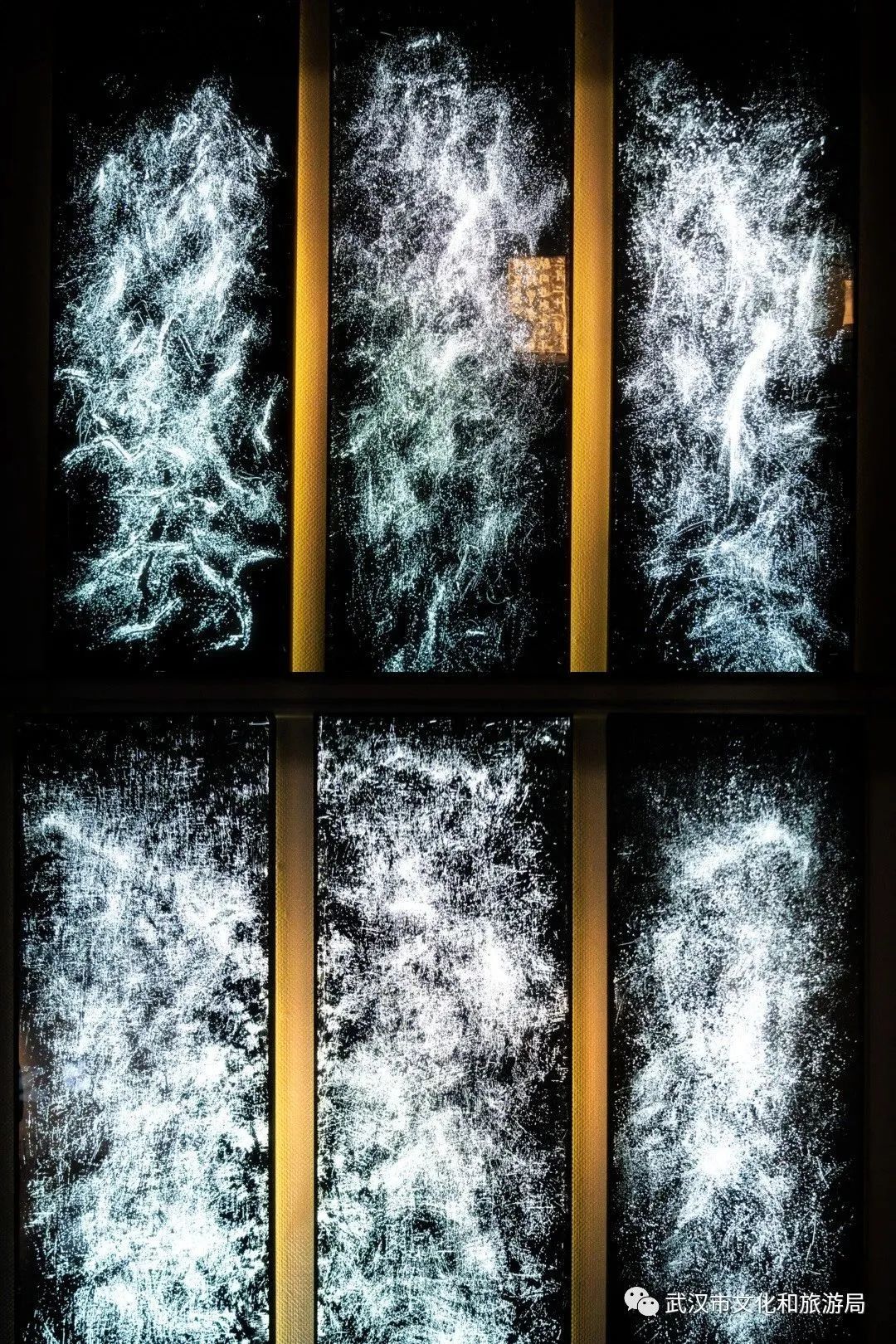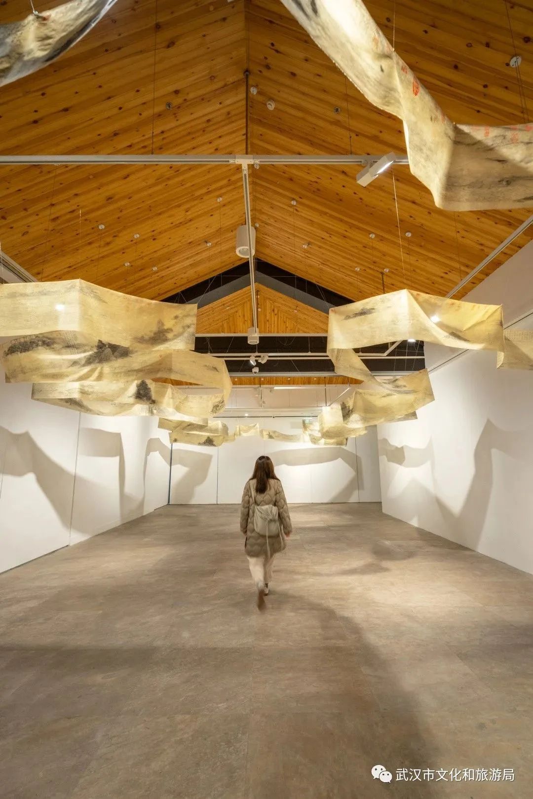 蜿蜒的水墨长卷,由一根根细丝悬挂在展厅上方,成为汉口馆打卡率最高的展品之一。