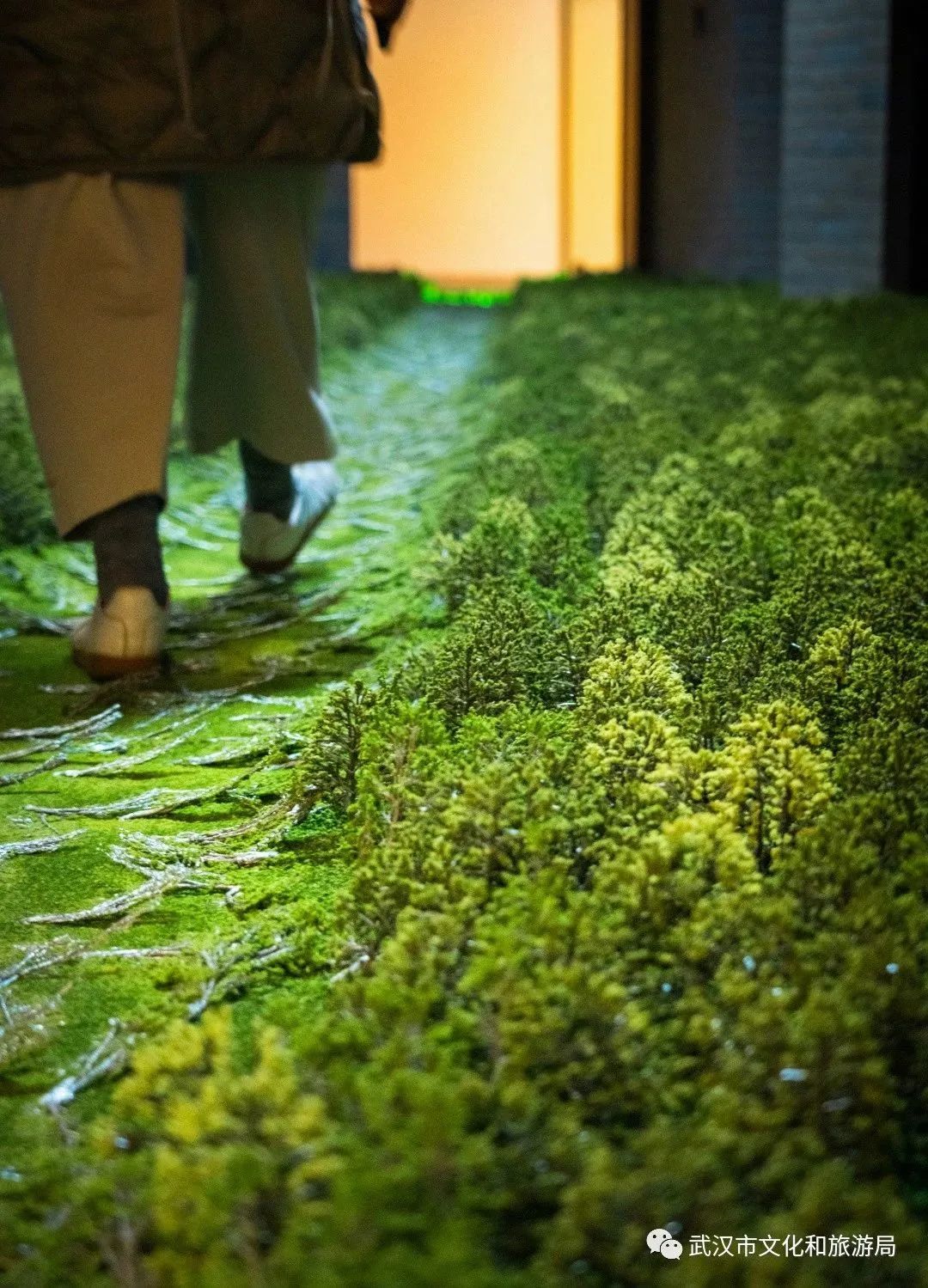 在连接二号、三号展厅的走廊处,艺术家杨心广将7000棵模型树“种”在人们的脚边。观众不断地穿过这片小森林,便会踏出一条小路。