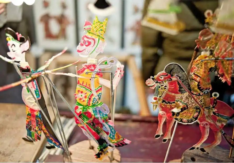 团扇、剪纸、皮影系玩偶、服饰、宫灯……热闹喧哗的集市摊位再现汉味民俗风土人情。