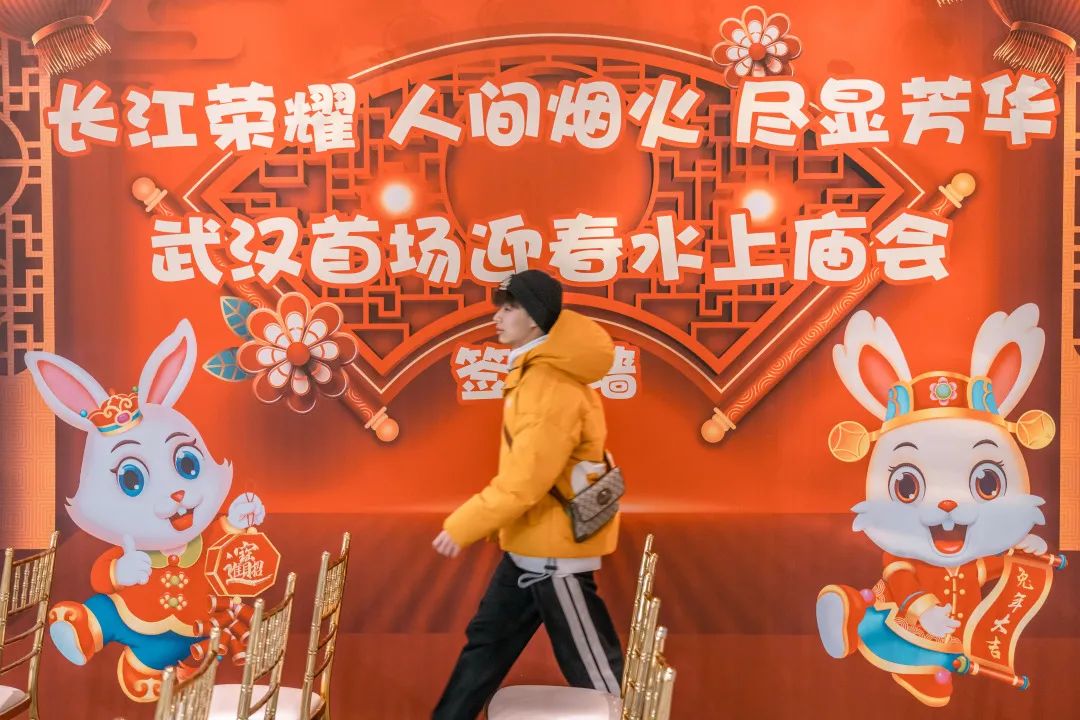 武汉首场移动式游轮庙会暨2023“年味武汉”迎春民俗文化活动于大年初一在“长江荣耀”游轮正式开幕,设置7大新春亮点,分别为“赏灯光秀”“拍千年前水上市集”“学非遗文化”“逛传统新春市集”“吃武汉老品牌点心”“玩新春游园会”“看移动演艺舞台”,超千人走进“长江荣耀”游轮,逛庙会、看演出,感受“老武汉”记忆中最有年味的事。