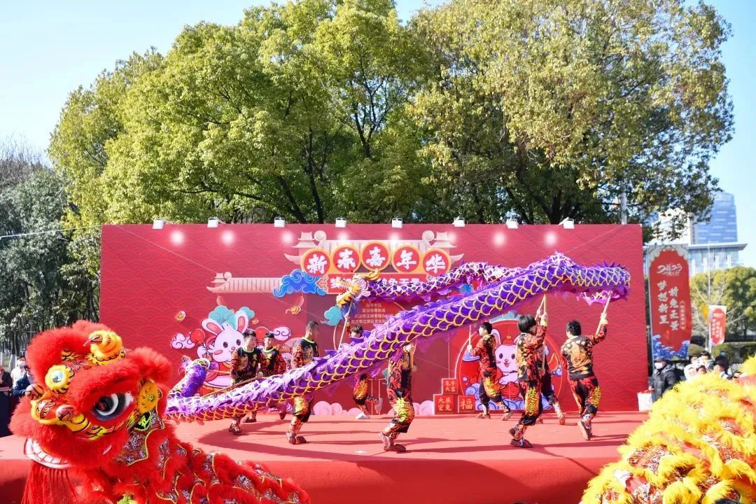 “梦想新至,前兔无量”2023新春嘉年华在汉口江滩风帆广场启幕,活动将持续至2月5日。湖北大鼓、湖北小曲、单口快板、汉服舞蹈等精彩节目轮番上演,还有非遗体验、舞龙舞狮、汉服游园等精彩活动,为游客提供集文艺表演、人文观赏、娱乐互动、生态景色于一体的乐园。