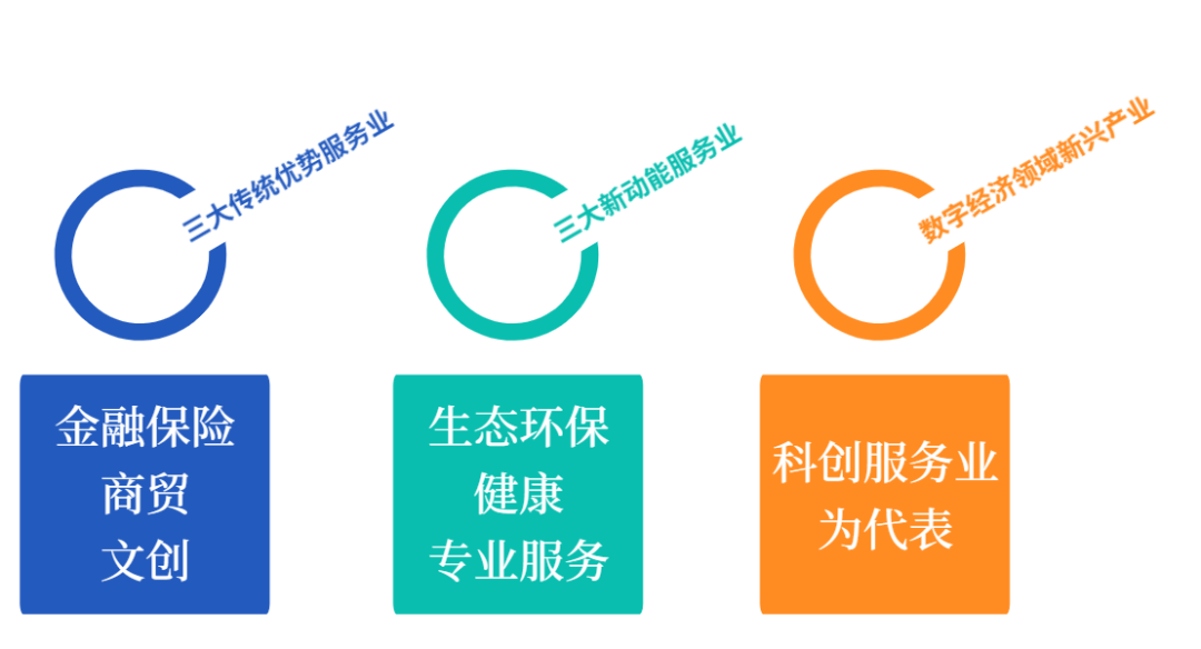 在新动能服务业方面,重点发展生态环境改善、绿色低碳技术研发、碳评估和交易服务等产业,打造生态环保产业集聚区;大力发展医疗服务、健康管理、互联网医疗等产业,打造大健康产业集聚区;发展会计审计、法律税务等业态,做强一批专业服务特色楼宇,打造专业服务业集聚区。