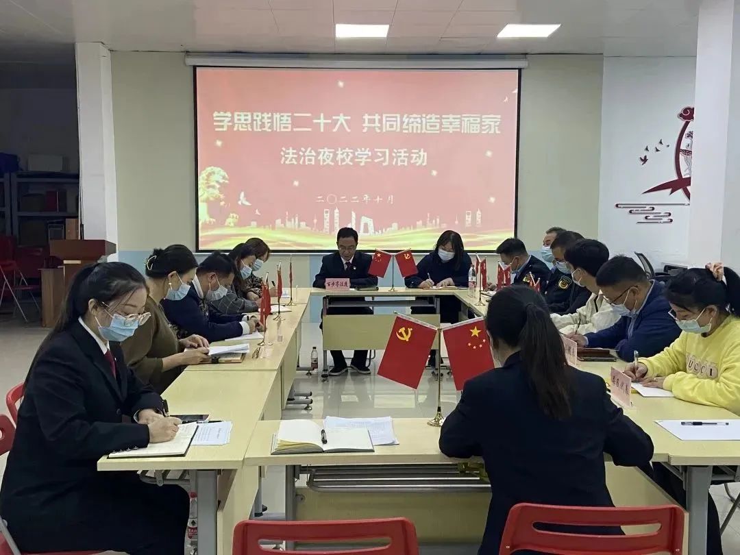 坚持党建引领法治宣传,人民法庭联合社区各支部开展“主题党日进社区”活动,学习宣讲党的二十大精神,详细解读全面依法治国、加快建设法治社会的精神内涵,引导基层党员、群众增强法治观念。