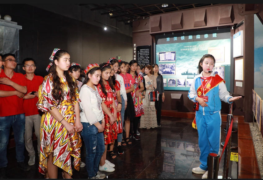 江岸区思政教师宣讲团团长特级教师吴又存老师在八七会议纪念馆,为前来参观学习的家长和学生担当讲解员,上了一堂特殊的思政课。吴老师通过对党史的讲述,引导学生坚定理想信念,立鸿鹄志、做奋斗者。