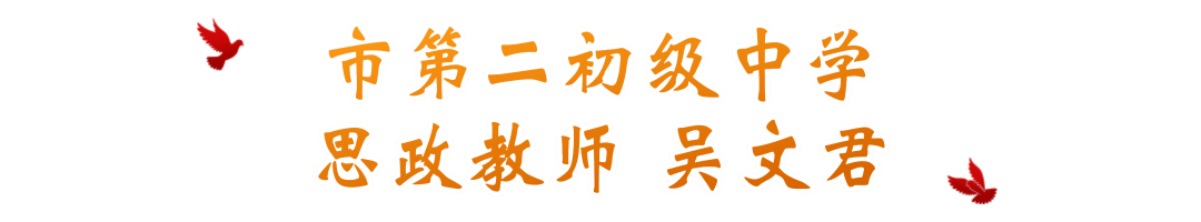 吴文君,武汉市第二初级中学的思政教师。湖北省青年讲师团讲师、湖北五一劳动奖章获得者、武汉五四青年奖章获得者、学习贯彻党的二十大精神武汉市教育系统宣讲队成员、区党史宣讲团成员、思政教师宣讲团成员。吴老师依托江岸红色资源,将思政课堂从教室搬到党史展览馆、爱国主义教育基地,实地对学生进行百年党史的教育,引导广大教师和学生从历史中汲取精神力量,赓续红色血脉、传承红色基因。个人宣讲事迹多次被人民日报、中新网、央视频、湖北日报、荆楚网、长江日报等媒体宣传报道。