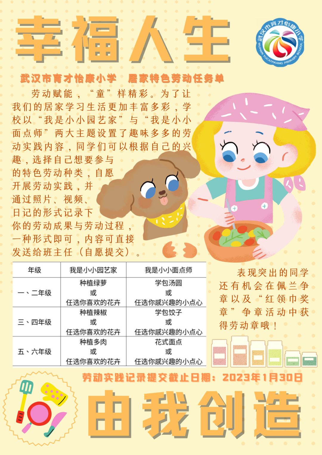 育才怡康小学将劳动教育与学校常规、课后服务工作有机结合,制定劳动教育实施方案,进行专项课题研究,打通学校与社会、教育与生活的围墙,以系列课程为主线全面提升劳动教育的品质和特色。