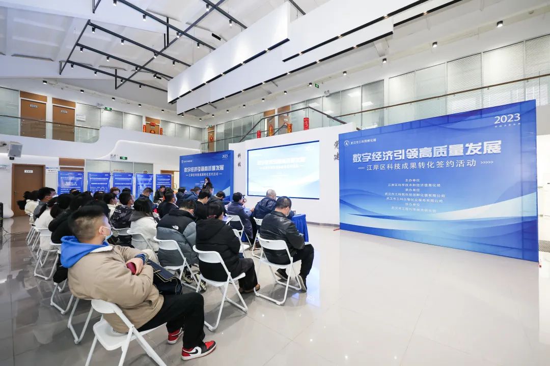 ●“数字经济引领高质量发展”江岸区科技成果转化签约活动在武汉市工科院孵化器举办。