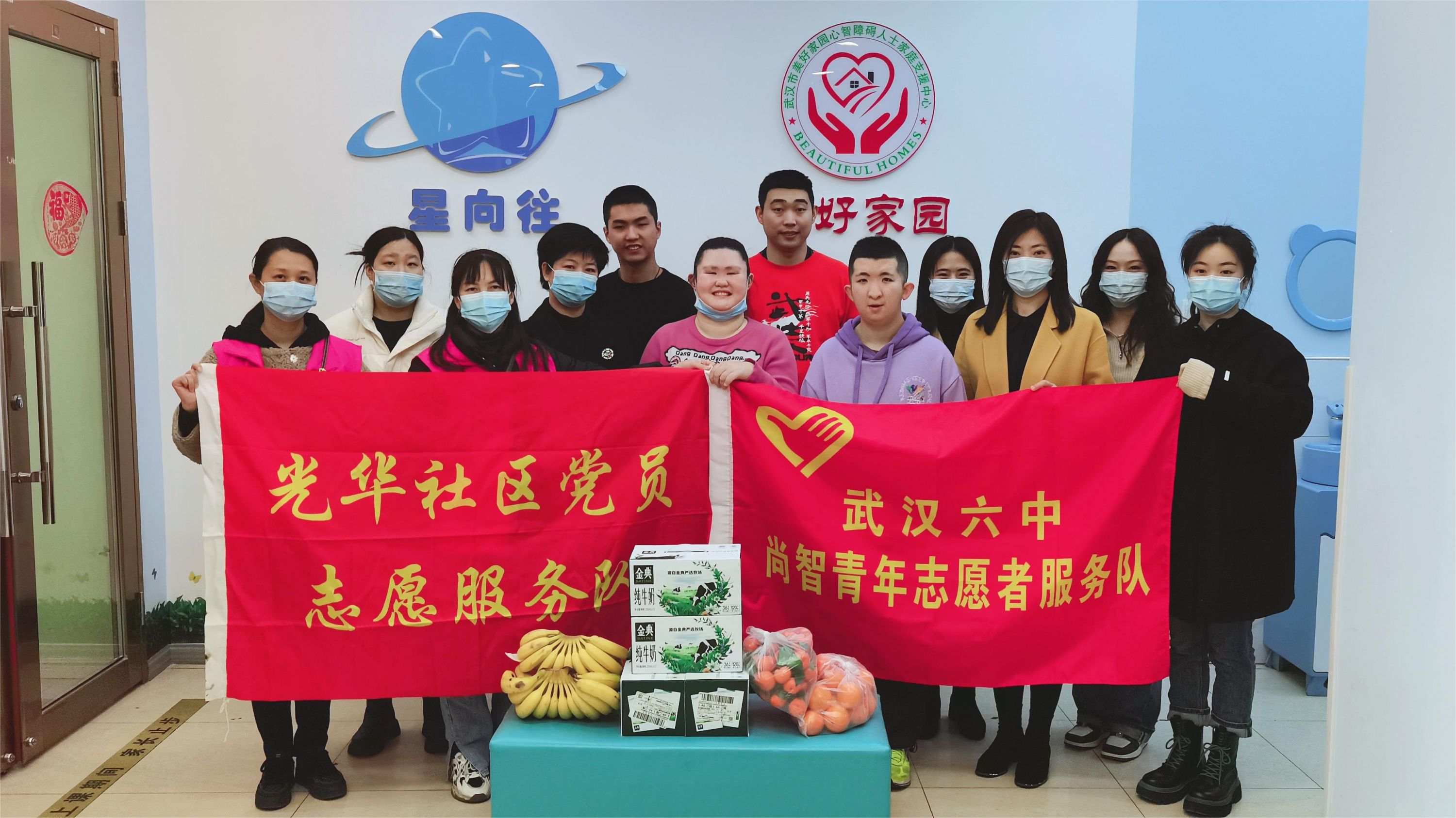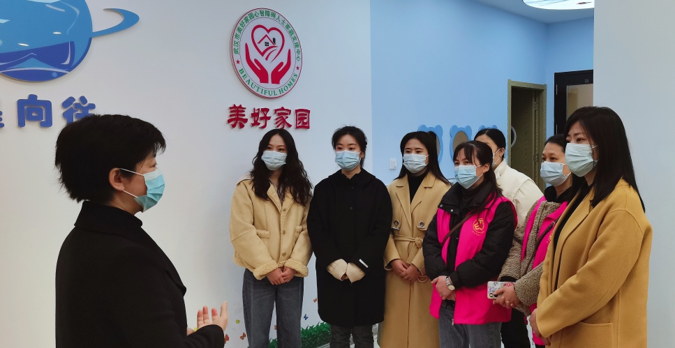 3月2日,江岸区劳动街道光华社区党委联合武汉六中尚智青年志愿者服务队走进武汉市美好家园心智障碍人士家庭支援中心,共同关爱“星星的孩子”。