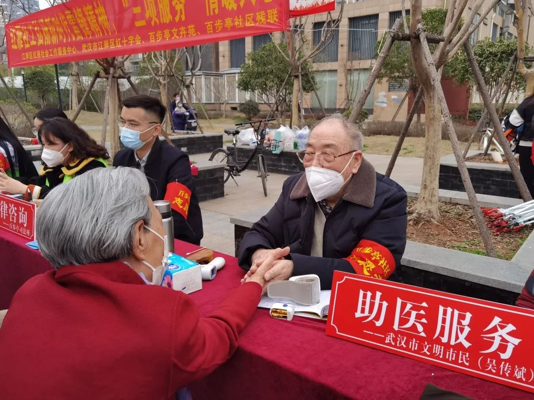 每天清晨,吴传斌便从居住的江岸区天声街,步行来到离家近两公里外的汉口江滩,为公园里锻炼、休闲的老年人提供义诊服务。