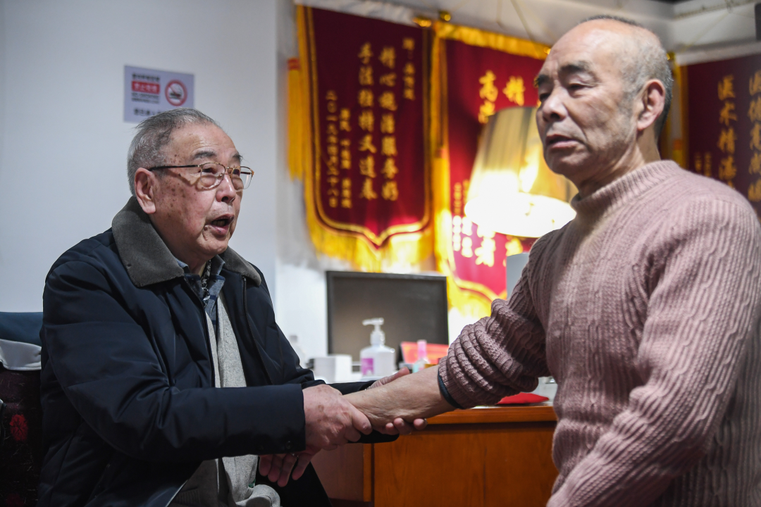 “年纪大了,就怕有个头疼脑热。”社区独居的陈爹爹今年80多岁了,患有基础性疾病,平时遇到身体不适,去看病就成了他的“老大难”问题。2017年开始,陈爹爹就成了健康小屋的常客,经过吴传斌的治疗,困扰他多年的腰腿痛老毛病得到了极大缓解。“你也是老年人,却不辞辛苦为我们服务,真是个大好人啊。”在社区里,陈爹爹逢人便说,吴传斌义诊服务如同一束光照进了他的独居生活,驱散了他内心的孤独。