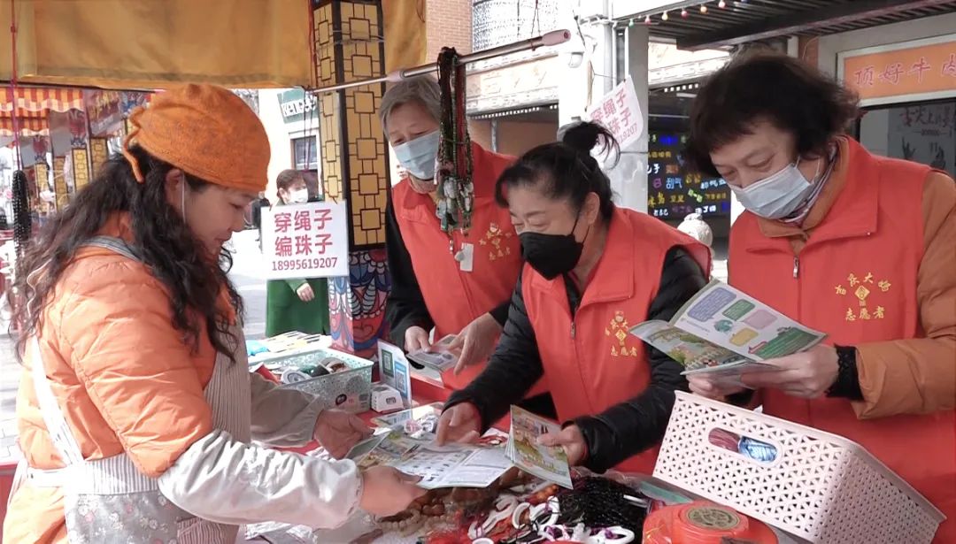 “吉庆大妈”志愿服务队成立于2019年,共有成员16名,平均年龄67岁,主要承担法规宣传、秩序规范、环境整治、商户服务、防控值守、导游讲解等志愿服务工作。