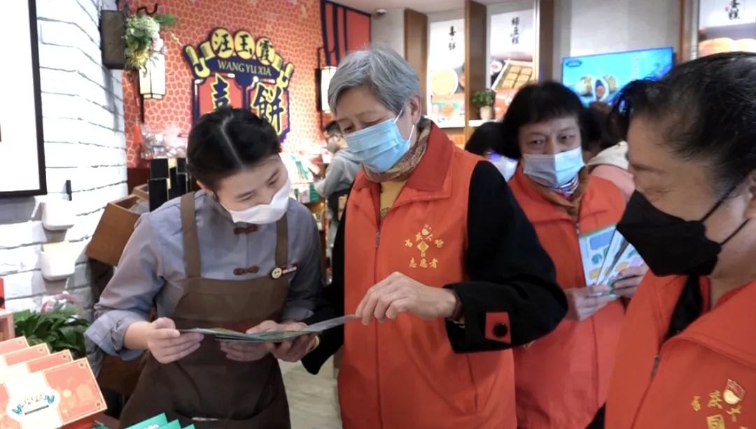 “吉庆大妈”多为吉庆街土生土长的老居民,了解吉庆街的美食,老字号背后的故事,新潮的网红小吃,在巡逻过程中她们会跟商户加强沟通,宣传政策法规,做好商户服务,看到不文明的现象及时劝解。