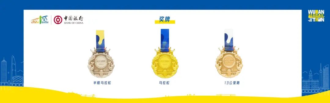 荆楚风的定制武汉马拉松完赛奖牌:奖牌正面以“虎座鸟架鼓”为灵感,代表荆楚文化的凤凰和黄鹤楼、长江大桥等地标建筑元素相结合寓意凤凰涅槃重生,武汉活力归来。