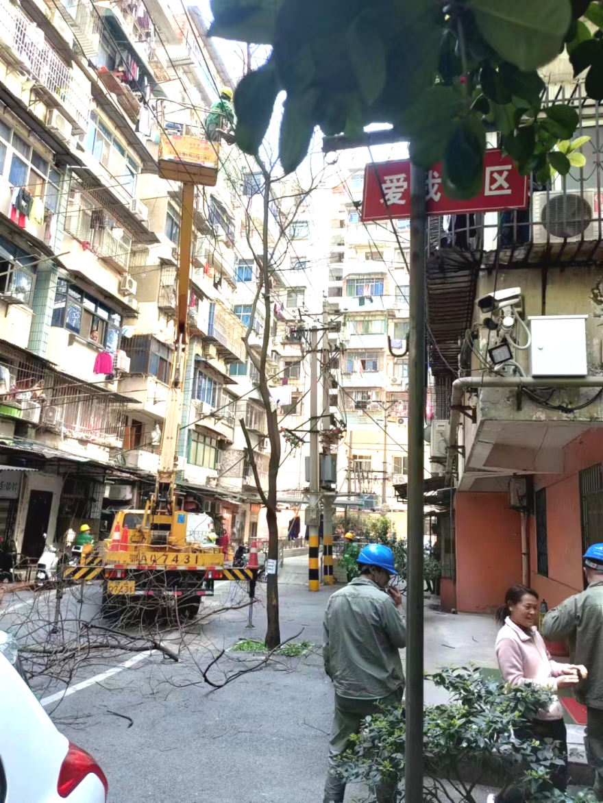 “施工前,我们制定了详细工作方案。”华清社区工作人员介绍道。为将对居民生活影响减至最低,清除前,社区工作人员、“红色物业”天源物业公司、社区志愿者们,通过喇叭广播、张贴公告、微信群内通知等多种方式,将停电时间段告知涉及的居民和商户,得到极大理解和支持,同时详细设计好了每个操作步骤和细节,确保停电时间最短、影响范围最小。