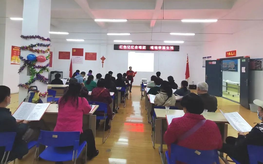 长湖地社区开展“红色记忆合唱团 唱响幸福生活”红色文化进社区活动,社区老党员叶阿姨和合唱团的成员们引吭高歌,倾情演唱一首首耳熟能详的红歌——《唱支山歌给党听》《没有共产党就没有新中国》《我们的中国梦》,用歌声致敬英雄,抒发爱党、爱国情怀,在歌声中感悟信仰力量。