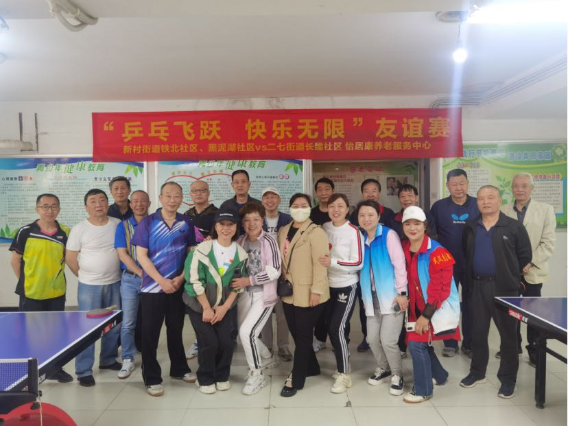 新村街道铁北社区党委、黑泥湖社区、长建社区联合怡居康养老服务中心组织老年人开展乒乓球友谊赛,以球会友共创友谊,展现新时代老年人积极向上的精神风貌,丰富了辖区老年人的体育文化生活。