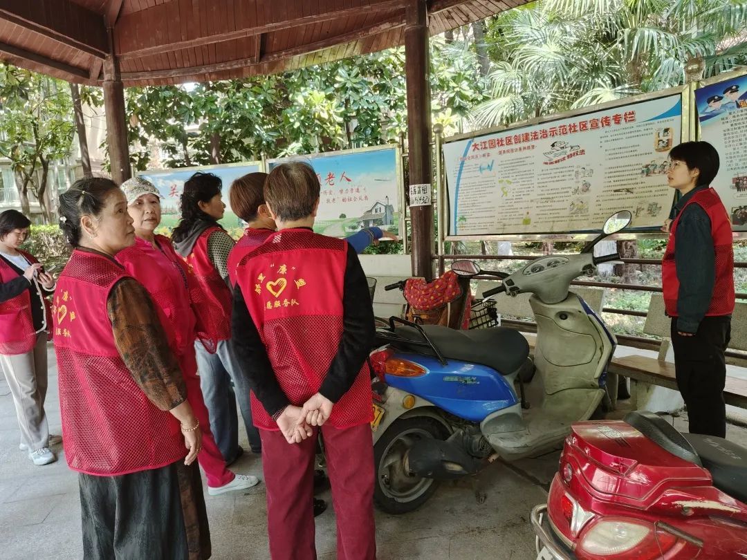 花桥街道大江园社区邻里“廉”盟志愿队为解决小区池塘周围蚊虫和凉亭停车问题,积极开展场景式协商议事,组织志愿者实地探查,同时联合社区医院进行蚊虫防治宣传和配备相关药品。针对凉亭—“长寿亭”电动车乱停问题,社区多方协商议事并重新改造“长寿亭”,打造邻里“廉”盟志愿队场景式协商议事的阵地,进一步提升社区治理水平。