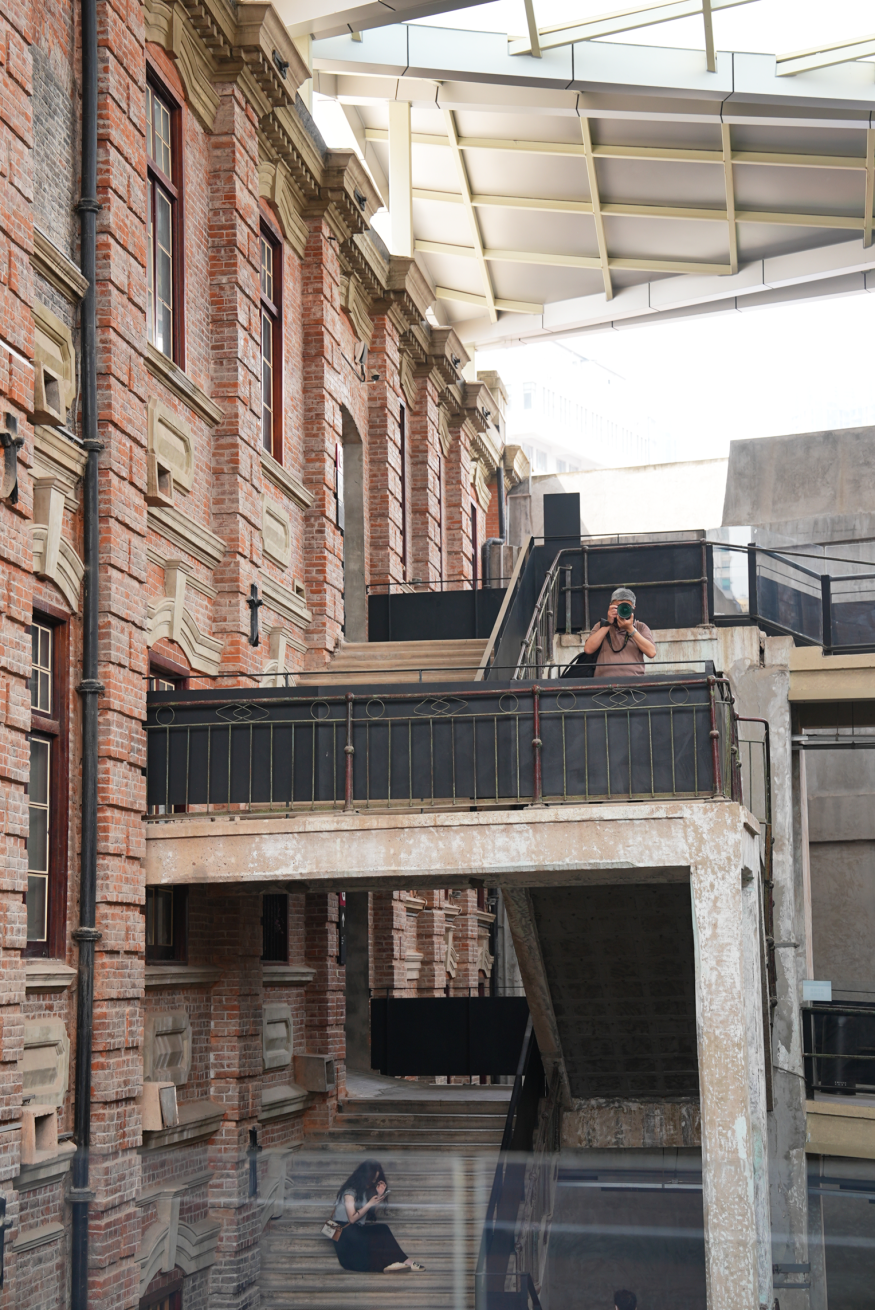 沿洞庭街行至平和打包厂,庞大的老建筑以朴素的姿态矗立,百年厂区中的红砖与钢架,在光影中呈现出独特的工业美景,引得一行人纷纷驻足。