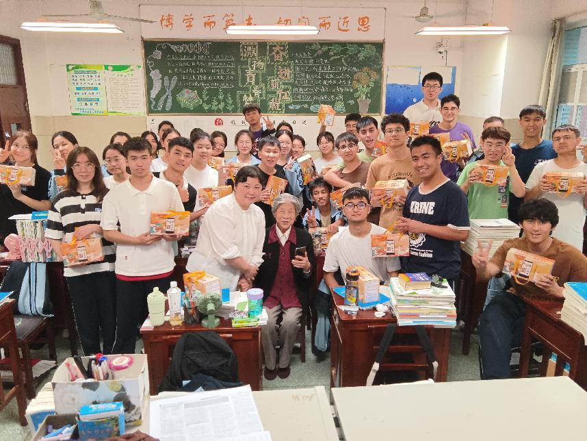“与新疆班孩子结对十多年了,现在这批孩子上高三了,正是学习最关键、最吃紧的时候,我更加牵挂他们,就想给他们带些好吃的,让他们开心一下,更有劲头学习。”大家开心地抱着吴奶奶的“心意”,簇拥着笑得合不拢嘴的吴奶奶拍了一张欢乐的合照。