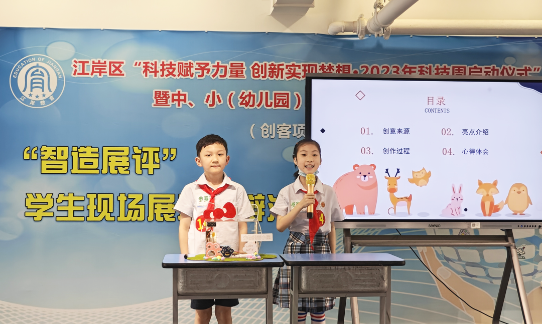 航空模型、科技小制作、机器人挑战赛、创客作品展示……5月20日,2023年江岸区科技活动周启动仪式暨青少年科技展示大赛在武汉市育才怡康小学(B校区)举行。