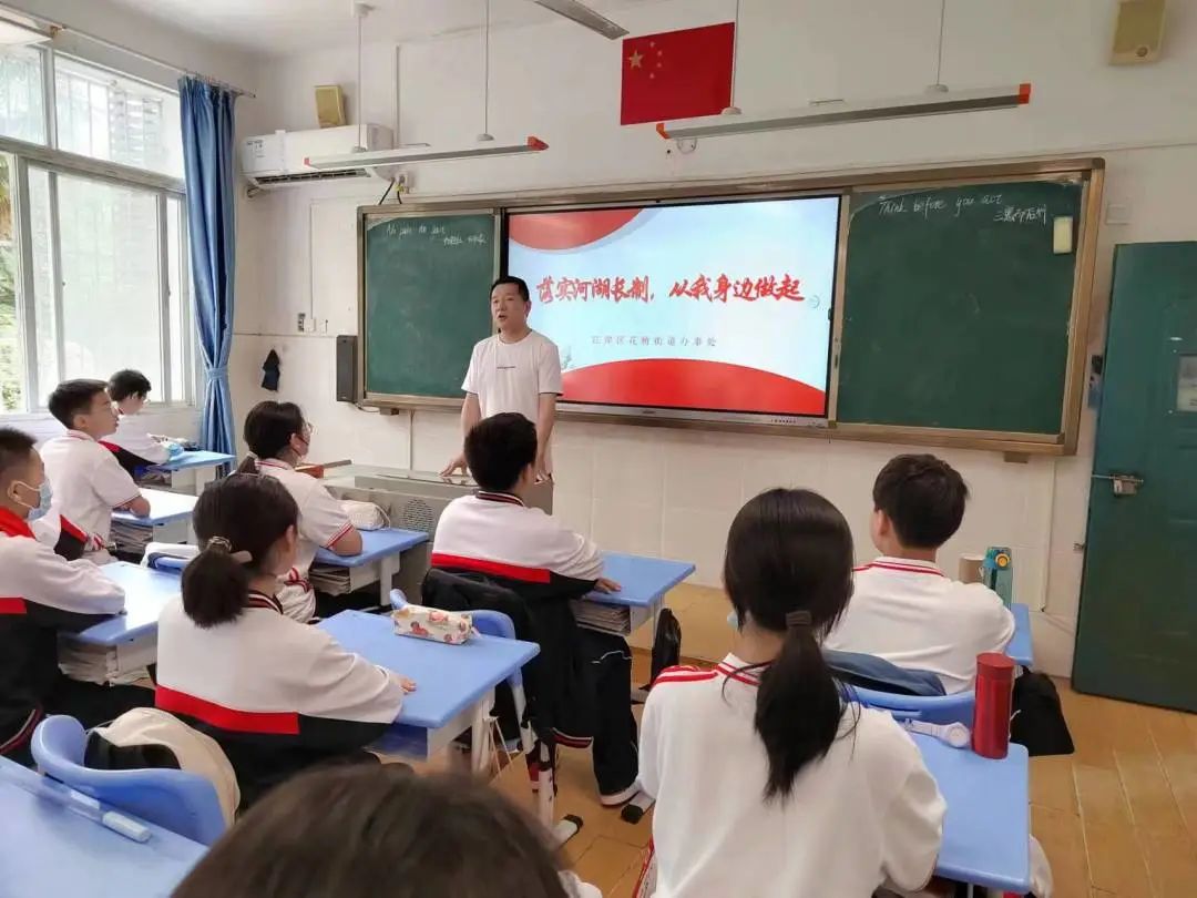 花桥街道开展“河湖长制进校园 ”环境保护宣传教育活动,为学生讲解环境保护宣传知识,呼吁同学们环境保护从身边小事做起,以主人翁的姿态积极参与环保的每一件小事。通过组织学生组建“小红帽”志愿服务队,参与社区清洁家园志愿活动,增强学生爱水、护水、节水意识,共同营造保护水环境、节约水资源的良好氛围。