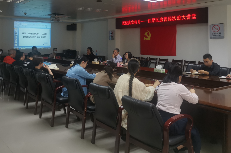 区房管局开展“民法典宣传月——法治大讲堂”活动,邀请法律顾问讲解针对《政府信息公开条例》《行政处罚法》《信访工作条例》等法律法规,结合房管局近年来的行政诉讼、行政复议、政府信息公开案例“以案释法”,就行政执法过程中如何注重程序合法、实体合法等问题进行仔细、深入的剖析,促进工作人员公正文明执法,不断提升区房管局行政执法水平。