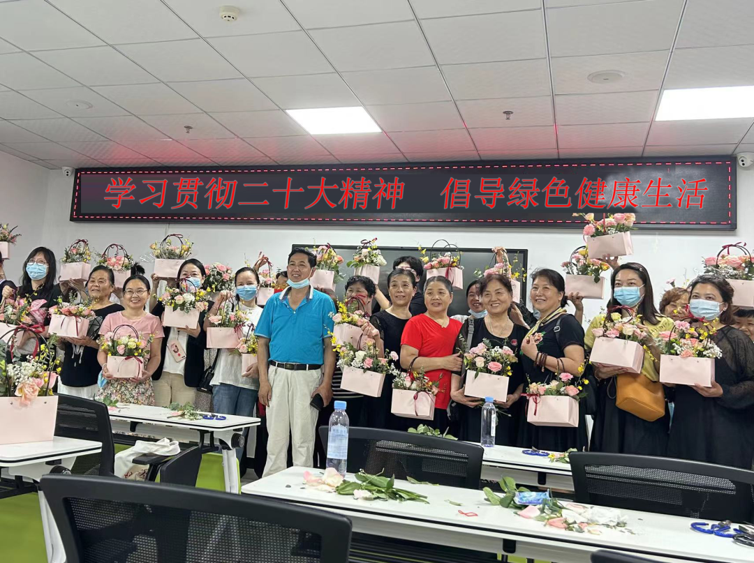 四唯街道五福社区开展“学习贯彻二十大精神 倡导绿色健康生活”主题插花活动,以党建聚民心,以花艺传温情。活动现场社区工作人员向居民代表宣讲了二十大报告中“推动绿色发展,促进人与自然和谐共生”主题内容。花艺老师为大家讲解花卉种植与保养、插花艺术与技巧等知识,指导大家进行花枝修剪与搭配,70多名居民代表在轻松愉悦的身心体验中,进一步增强了爱护花草、绿色生活的意识。
