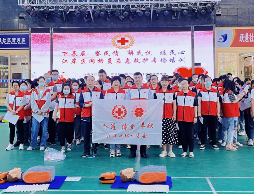 区网格化服务中心联合区红十字会举行首场全区网格员应急救护培训活动,邀请专业应急救护师资团队详细讲解日常救援过程中常见突发事件的处理手段、AED操作流程、徒手心肺复苏按压手法和实施步骤等自救互救知识。利用模拟人进行现场演示,邀请网格员参与实操,尽力还原急救措施的细节,确保每一名学员做到判断准、操作快、效果好,真正掌握应急救护操作技能。