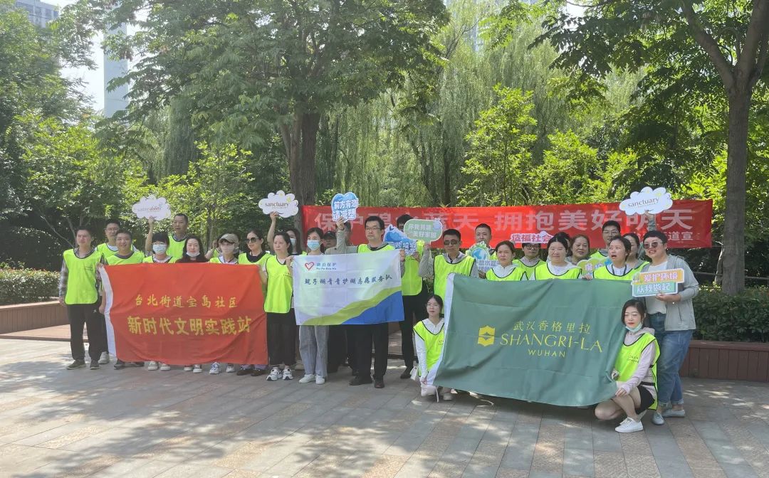 台北街道联合湖泊管理所、宝岛社区护湖志愿者、武汉香格里拉志愿者开展“保护碧水蓝天,拥抱美好明天”主题活动,对宝岛公园城中湖进行维护治理,宣传保护水资源环境,制止污染,以实际行动感染和引导居民群众爱湖、护湖,积极发动更多社会力量参与进来,共同缔造美丽宝岛。