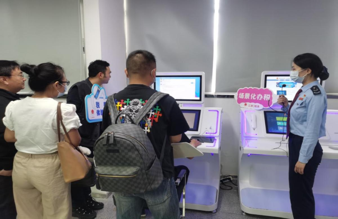 区税务局以便民办税春风行动为契机,邀请“小江观察团”15名税务中介机构代表,化身税费服务体验师走进办税服务“台前幕后”,沉浸式体验智能化改造对办税缴费带来的新变化。活动中,观察团成员在黄孝河路办税厅现场操作双屏机、智税助手,参观“没办成请找我”专窗,体验“场景化”办税、一站式办税、“没办成我来帮”等小程序专码服务。