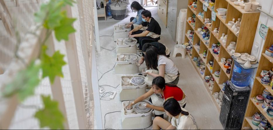 选好一个模型后在角落坐下,店员轻声细语地指导,我只用专注于手中的一团白泥,把它转动起来,握成圆,拉高,捏薄,再收口。慢慢把它变成我想要的样子。