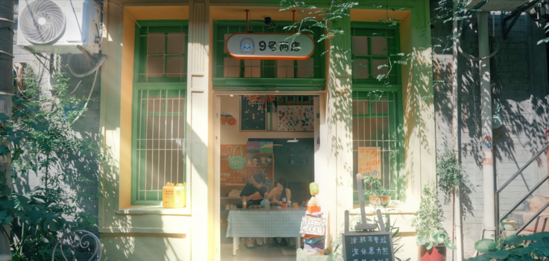 四五岁的小女孩从一家店里跑出来。抬头望去,才发现里面藏着一间小小的古着店,斑驳的墙体和创意的门头交错让我心生好奇,路边坐在凉椅上摇蒲扇的婆婆热情搭话。