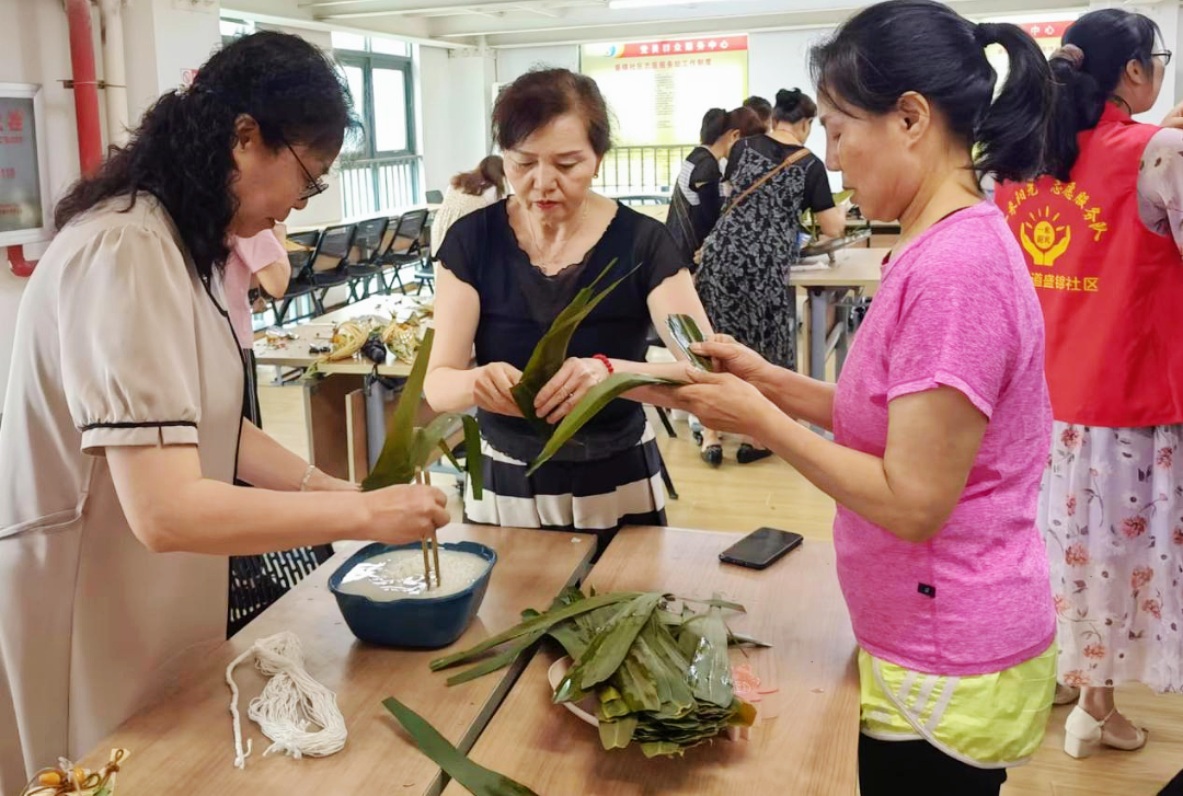 新村街道盛锦社区举办了“艾草飘香,粽情端午”主题活动,居民们在“小院家常桌”上包粽子和制作手工竹编船香包。活动结束后,工作人员和志愿者将粽子和祝福送给空巢、独居老人及困难家庭。