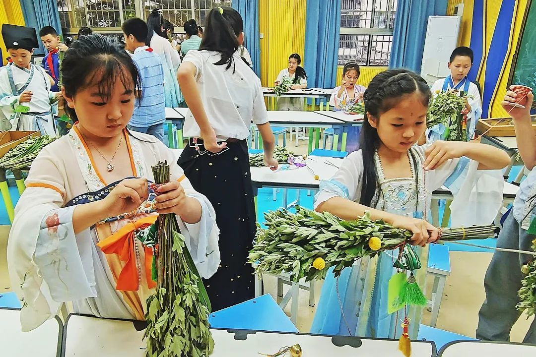 区教育局联合澳门路小学以“巧手过端午 浓浓艾香情”为主题,开展了端午节文创活动,本次活动围绕"艾"展开,传递"艾"文化。澳门路小学学生身穿汉服,制作艾草花束。