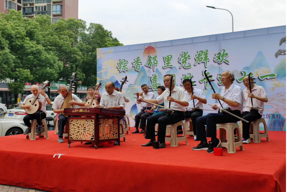 后湖街道香园社区新时代文明实践站举办了“粽香邻里党群欢 喜闹端午迎七一”文艺演出活动。社区居民艺术团表演了舞蹈《万疆》《秋梦》《蓝水湖之恋》,歌曲《我和我的祖国》等节目。