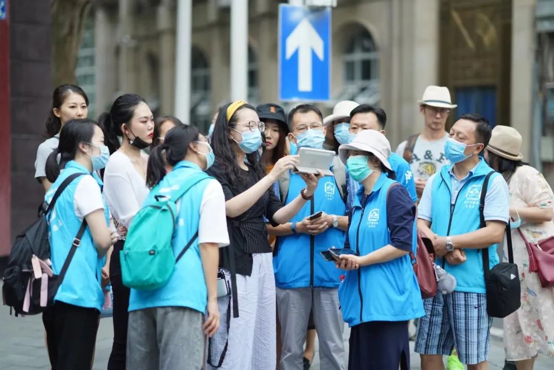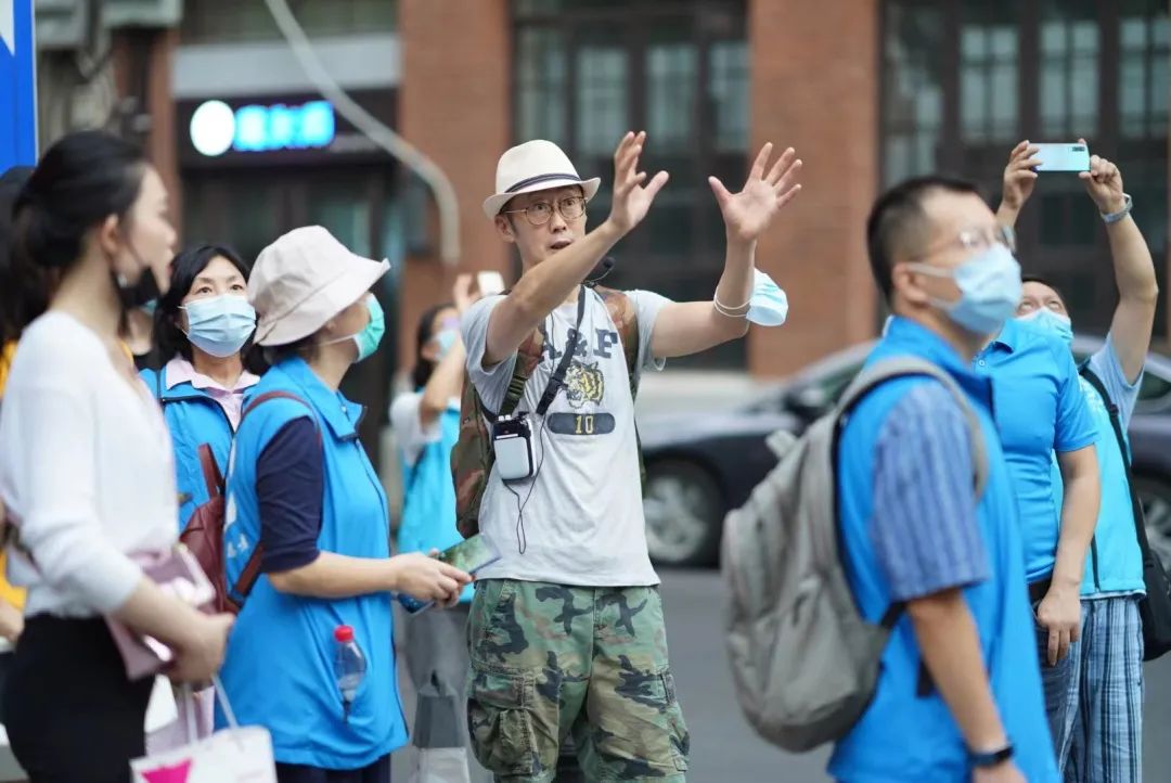 如她一样,当下“City Walk”30多人的志愿者队伍中,既有名牌大学学生、中学历史老师,也有职业经理人、警察等。每年,城市导览活动都会公开招募对老建筑和城市历史文化有兴趣、热心公益的志愿者,但仅有个位数的“幸运儿”在经过简历筛选、面试、试讲等重重考核后,从百位竞争者中脱颖而出,加入这个“大家庭”。