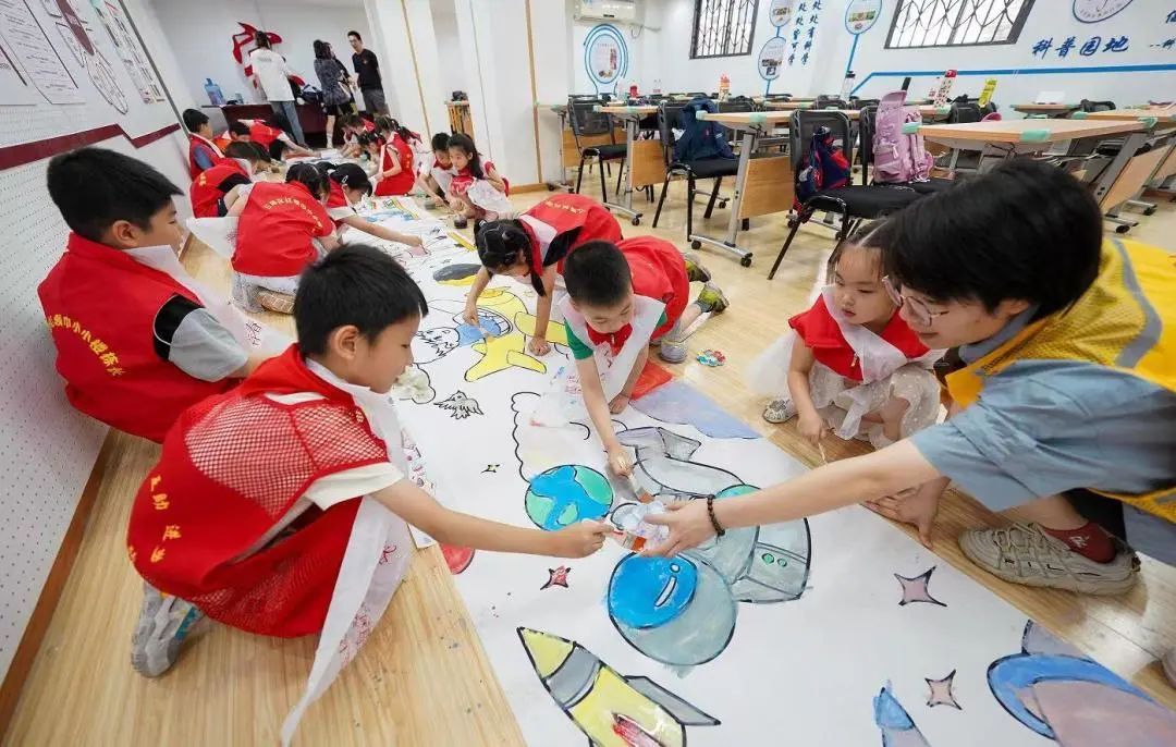 海赋社区作为科普示范社区,今年安排的课程更多的与科普相关,托管班负责人罗丽娜介绍,社区今年加入了很多科普相关的主题,让孩子们在快乐中学习,潜移默化地影响孩子的成长。“我们希望让孩子们在托管班里多玩一玩,多汲取课本之外的知识。”