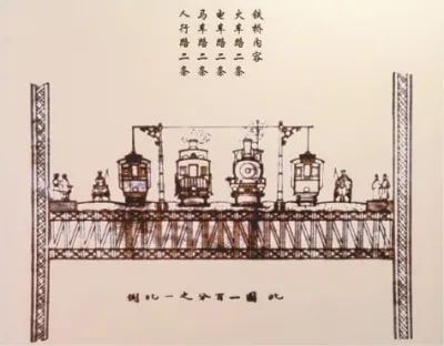 ▍詹天佑一百多年前设计的长江大桥图。