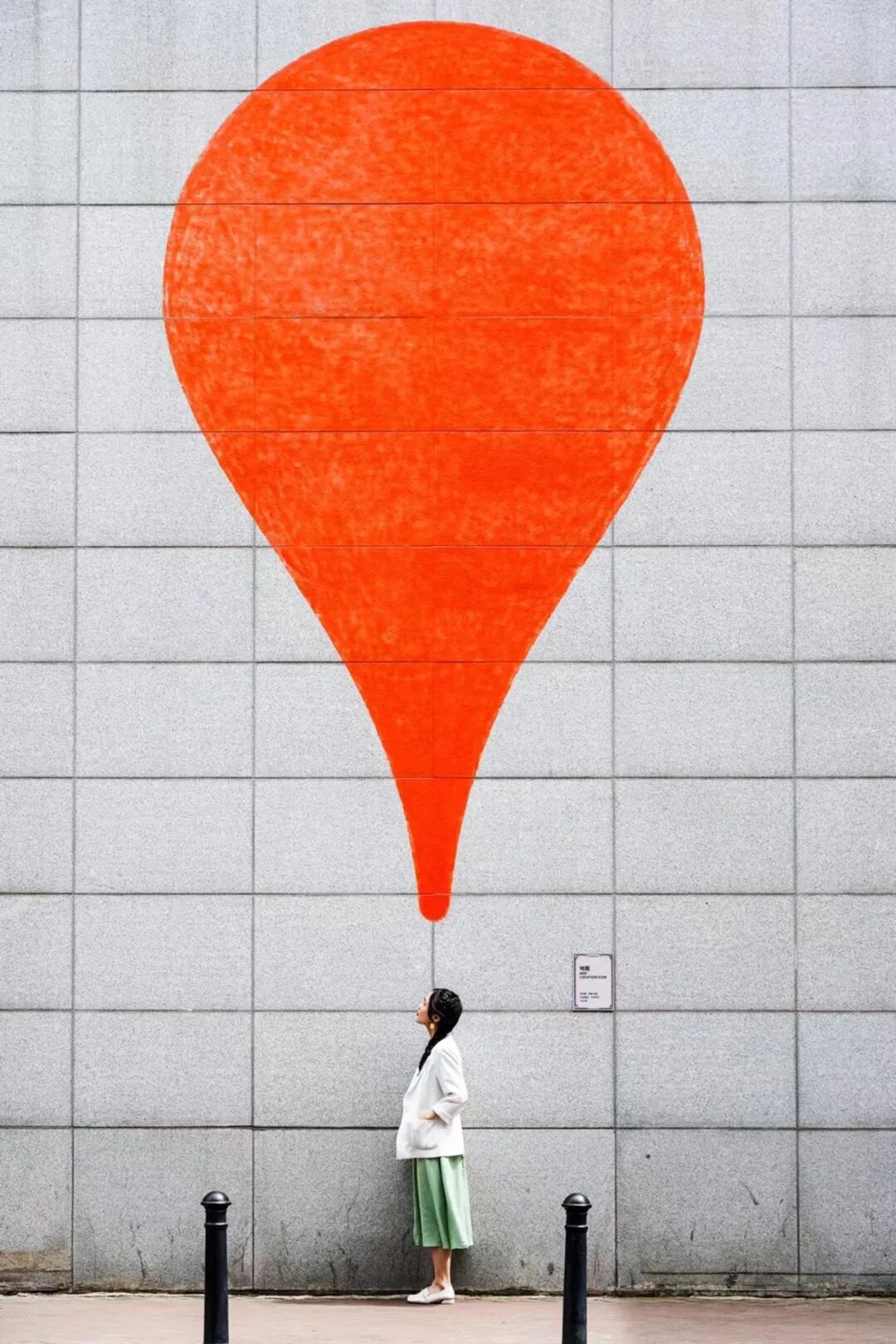 武汉美术馆(汉口馆)当然也是打卡必到处,馆外墙面上那只超出片的巨大红气球也在逐渐褪色。