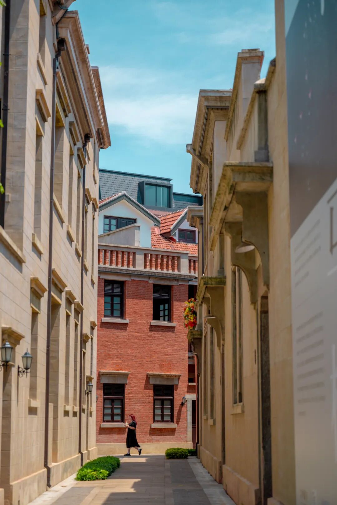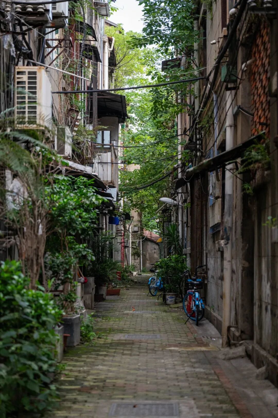 抬头看云,低头漫步,阳光从法桐叶缝中漏出,在老房子墙上留下斑驳光影。