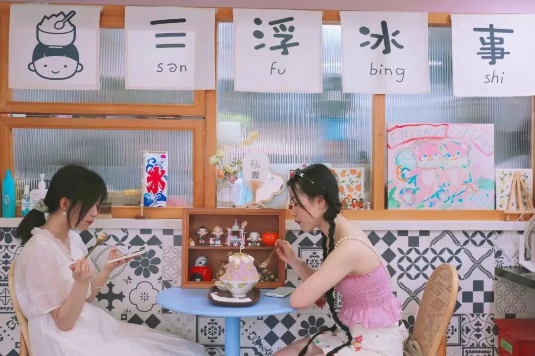 “千浔冰事”是保成路巷子里一家平价的刨冰店,里面布置了席地而坐的日式榻榻米,主营刨冰的同时出售一些可爱小巧的挂件饰品,价格和店里的刨冰一样亲切。